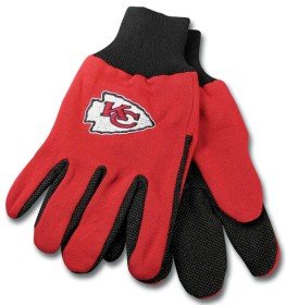 Kansas City Chiefs Knit Work Gloves. Whether your gardening, working around the house, or to keep your hands warm, these Kansas City Chiefs gloves look great. Gloves feature Kansas City Chiefs team logo. Non slip palm area. Ample size fits most. Officially licensed by NFL.
